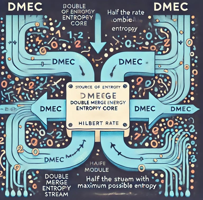 Double merge entropy core, This module starting from two streaming source of entropy will produce one streaming output with half rate but maximum possible entropy. In other words make a kind of Hilbert sum of two entropy streaming input.